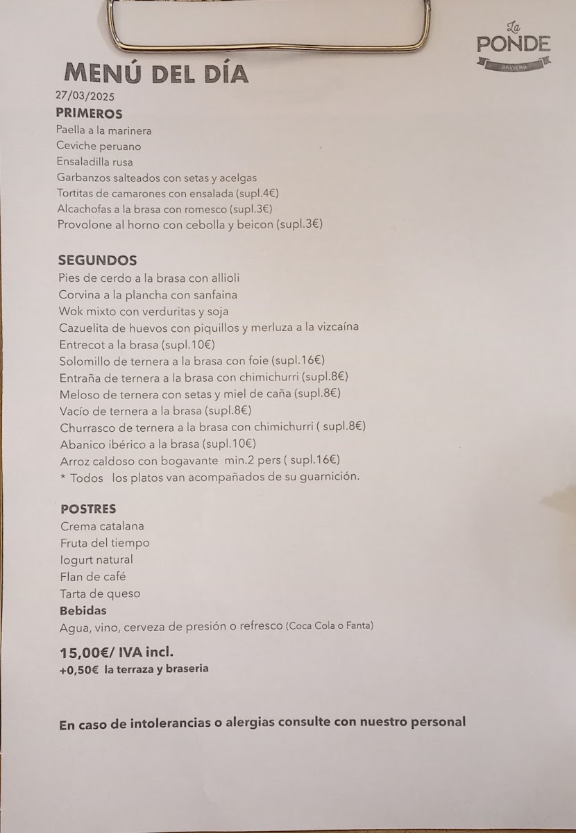 Welcome to Braseria La Ponde, a hidden gem nestled in the heart of Sant Cugat del Valles, Barcelona. This delightful eatery invites you to savor a menu that champions the essence of traditional Spanish cuisine. Positioned at Carrer de Mallorca, 18, it creates an intimate atmosphere perfect for sharing delicious moments with friends or family.